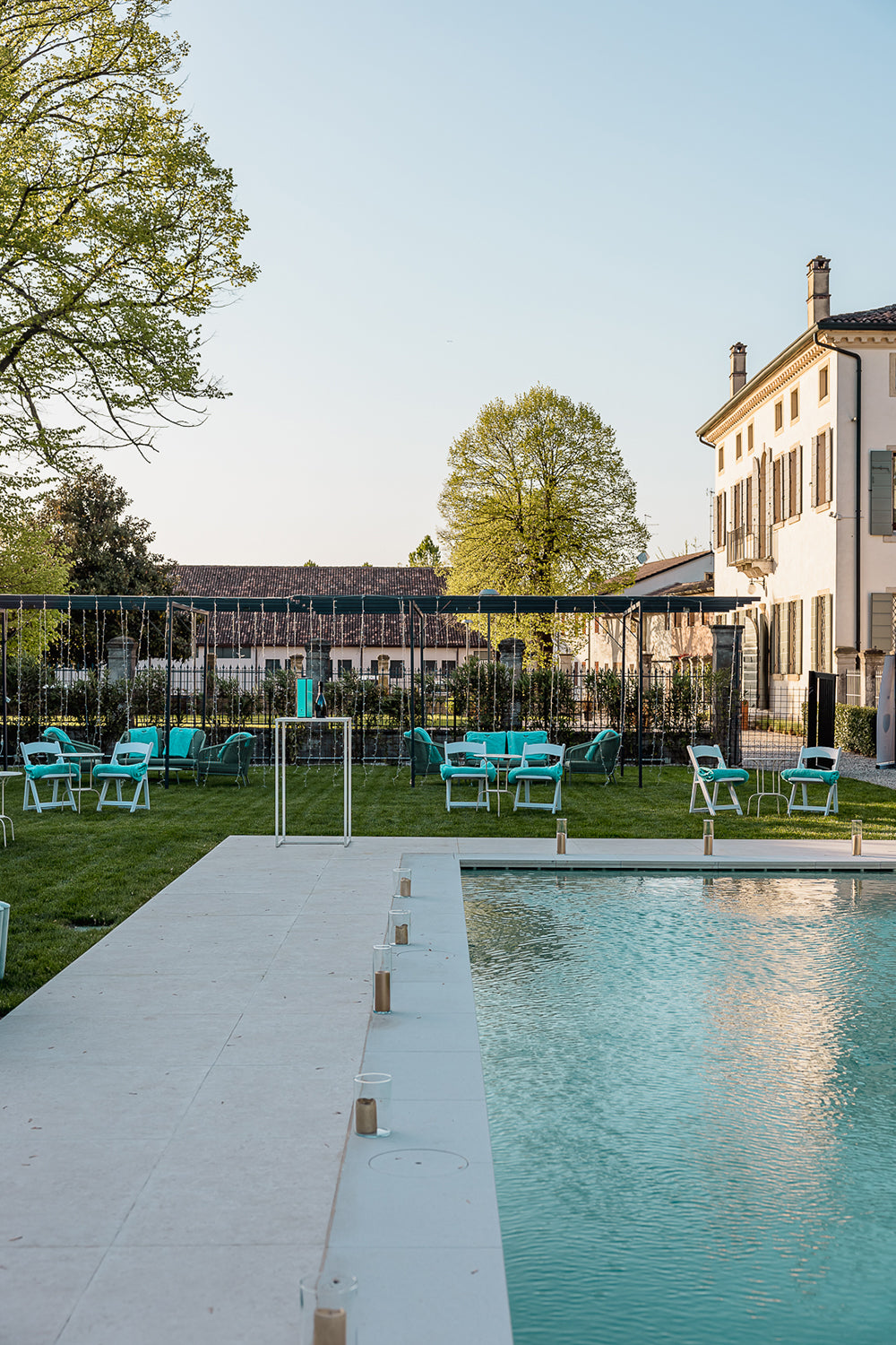 Perfetta non solo per il soggiorno, la piscina diventa lo sfondo ideale per un rinfresco all’aperto durante un evento speciale o per un brunch rilassato il giorno dopo il matrimonio, quando le emozioni ancora vibrano nell’aria e si desidera solo godere della bellezza, senza fretta.